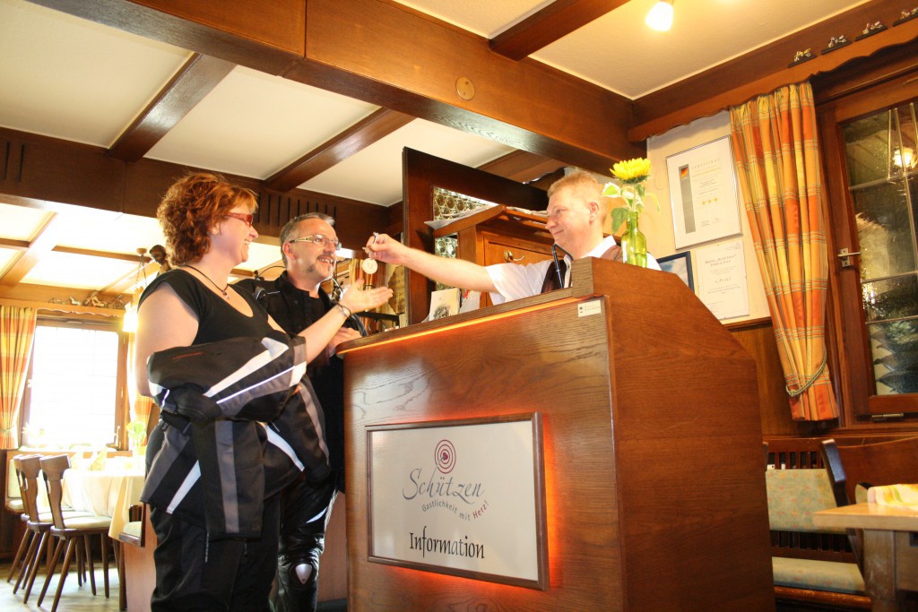 Von Herzen gerne verwöhnen wir unsere Gäste. Hier treffen sich Erholungssuchende aller Couleur: Kurgäste und Motorradfahrer, Wanderer und Sportbegeisterte...   Was sie alle eint, ist die Liebe zu unserer herrlichen Landschaft und so hat bei den geselligen Runden im "Schützen" jeder seine eigene Schwarzwaldgeschichte zu erzählen. Wir, die Familie Falk freuen uns auf Ihren Besuch und umsorgen Sie mit der typischen Schwarzwälder Gastlichkeit! Unsere Zimmer sind mit Dusche, WC, SAT-TV, und teilweise mit Balkon.