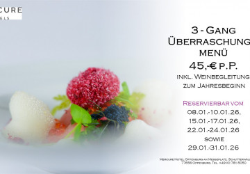 3 - Gang Überraschungsmenü 45,-€ p.P. inkl. Weinbegleitung zum Jahresbeginn   Reser